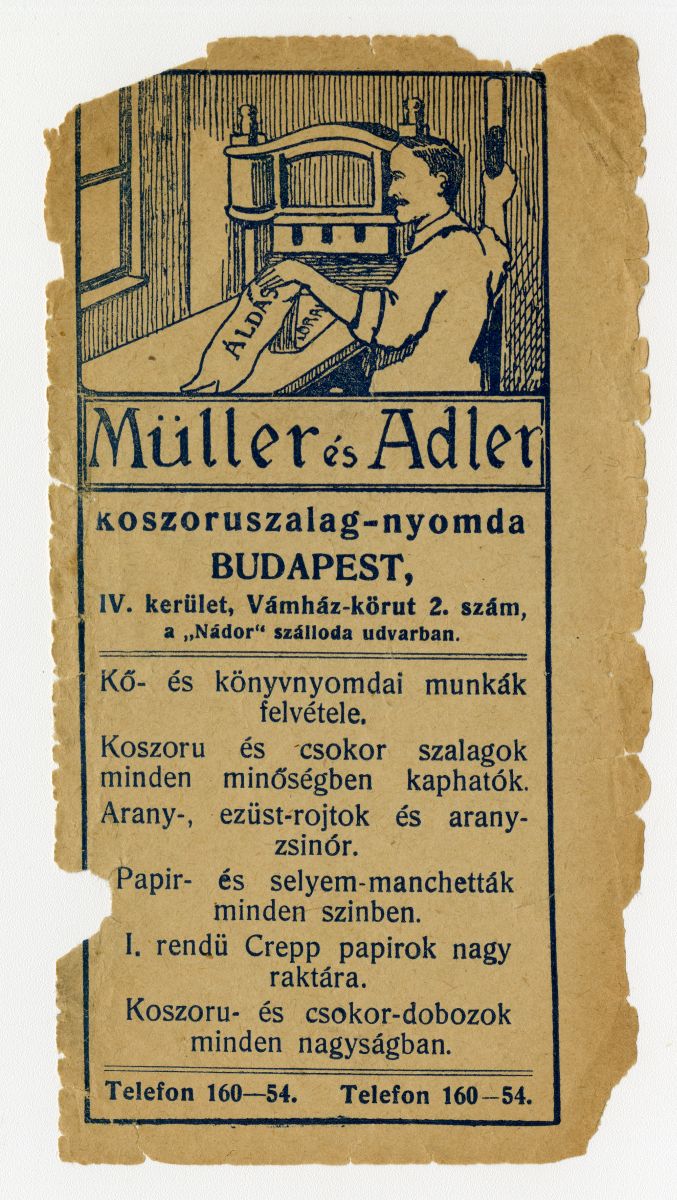 Cégnév:Müller és Adler Koszorúszalag-nyomda
