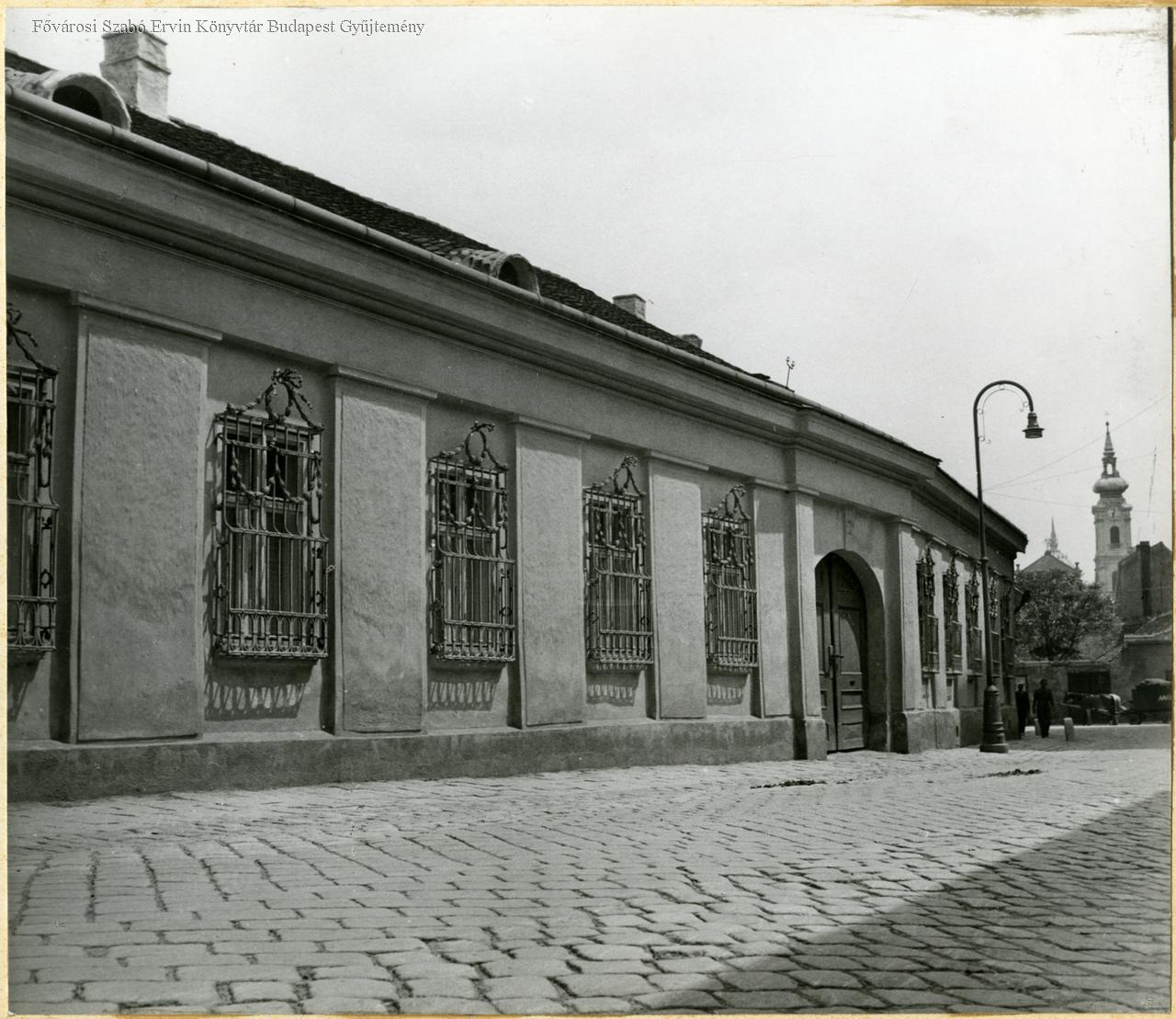 utcakép, lakóépület, copf stílus, ablakszerkezet, lámpa, vasművesség, kapu, 1943