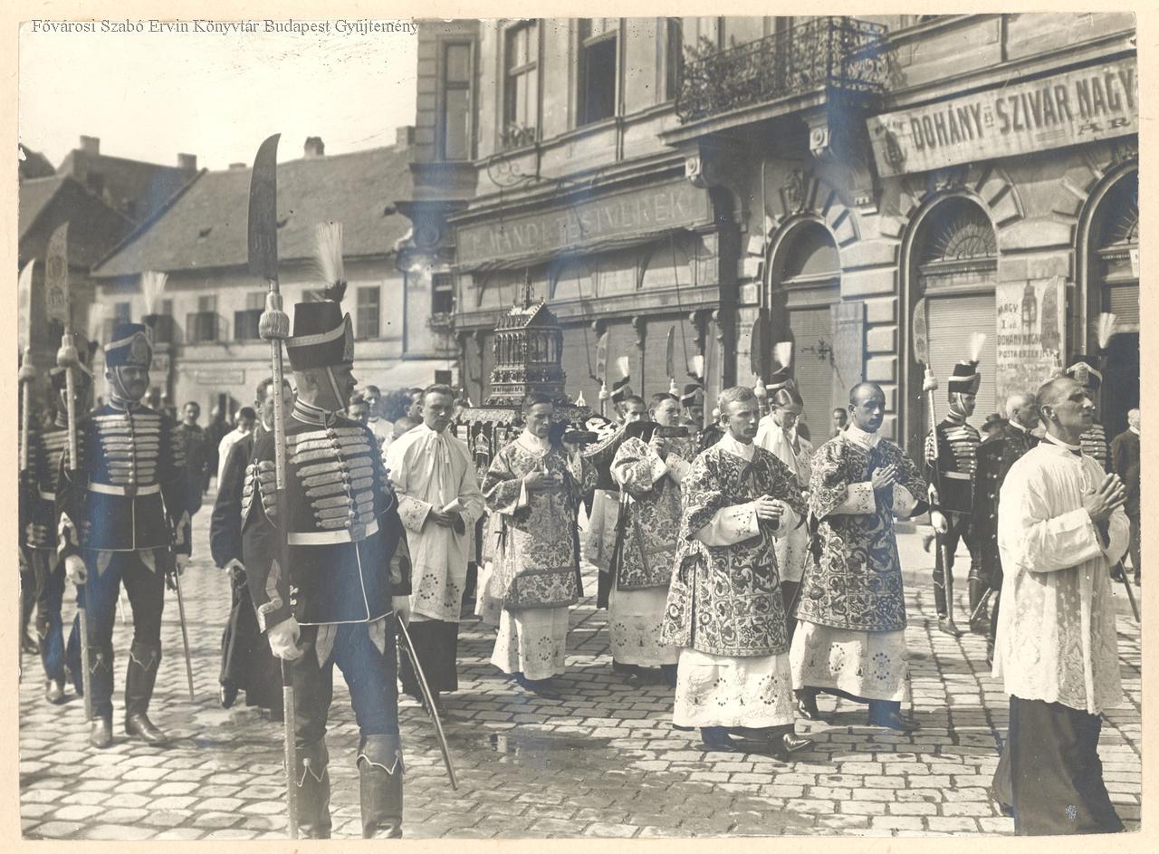 nemzeti ünnep, egyházi ünnep, katolikus egyház, körmenet, augusztus 20., ereklye, egyházi ruházat, egyházi személy, zászló, egyenruha, 1917, 1918