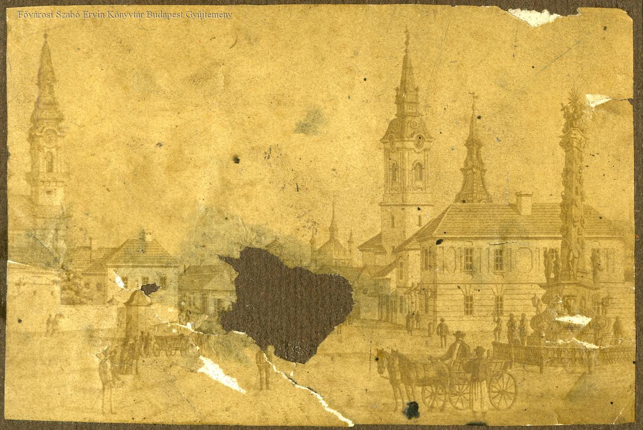 belváros, 19. század, lovaskocsi, fogadalmi emlék, templom, lakóépület