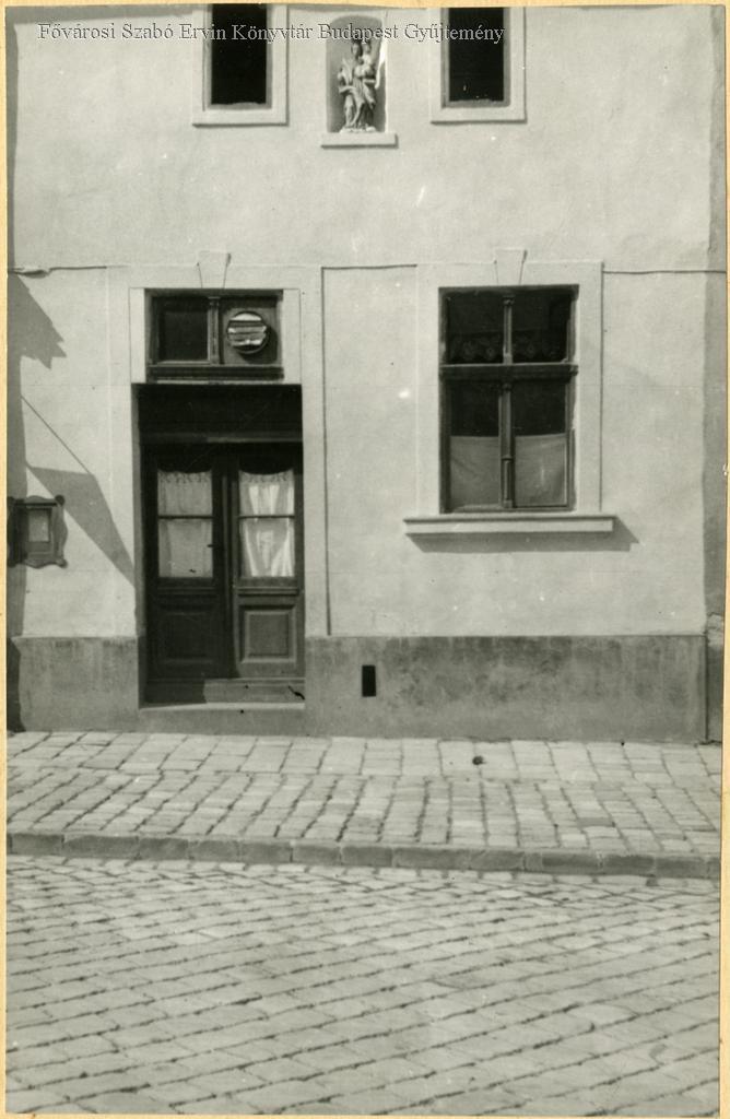A homlokzaton egy kis méretű Mária gyermekével-plasztika