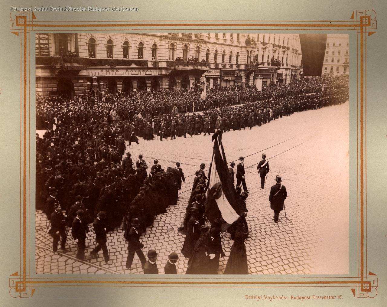 [Kossuth Lajos temetése, a gyászmenet az Erzsébet körúton az Emke kávéház előtt fordul, 1894. április 1.]