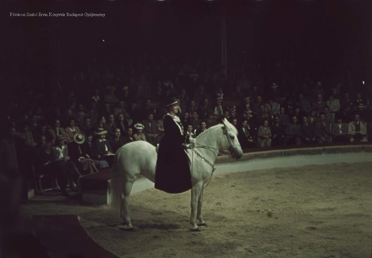 cirkuszi előadás, cirkusz, szórakozás, ember, néző, nézőtér, jelenetkép, ló, nő, 1937-1944