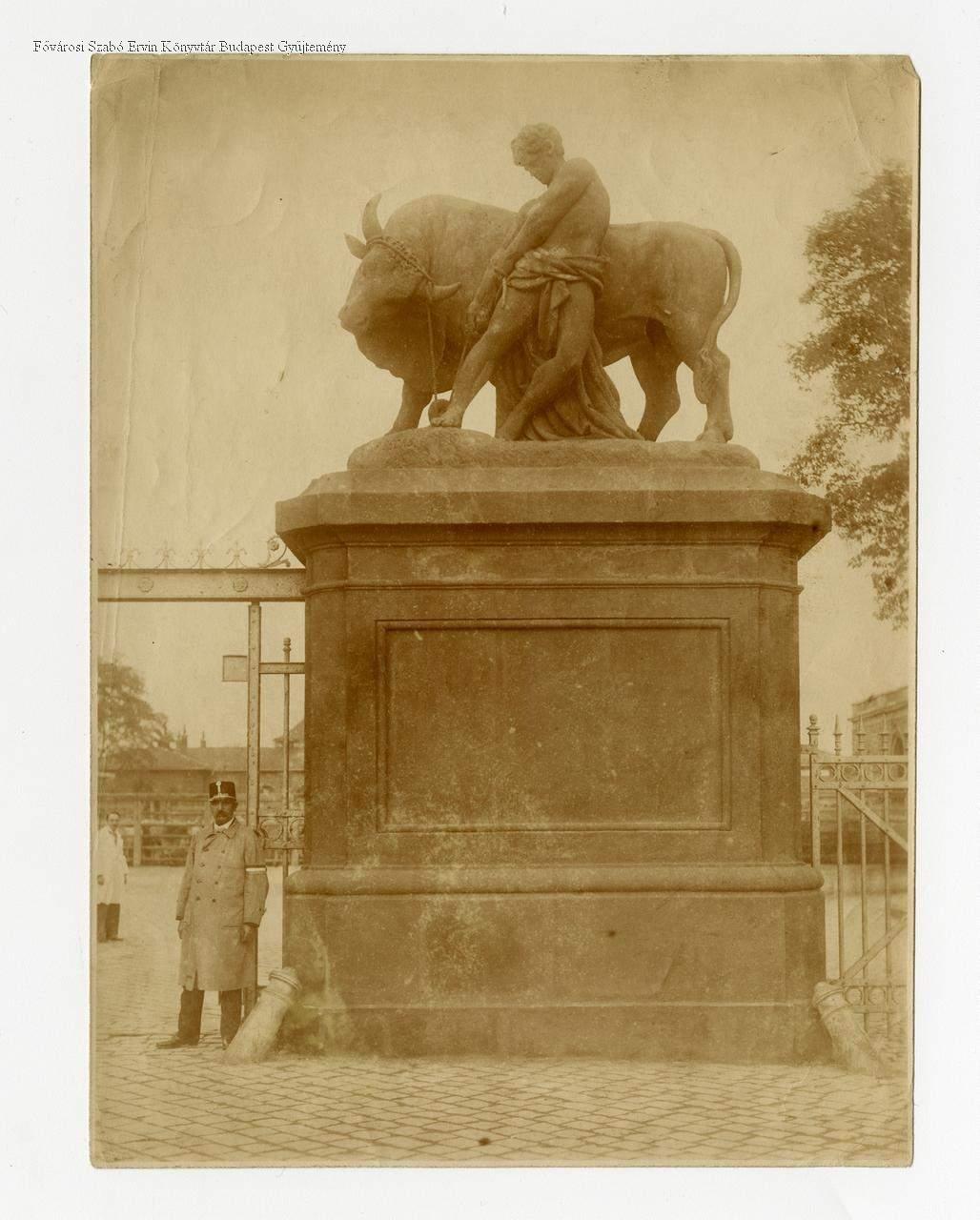 [A Közvágóhíd bejárata, a bikát ábrázoló szobor