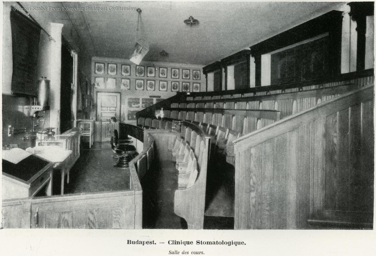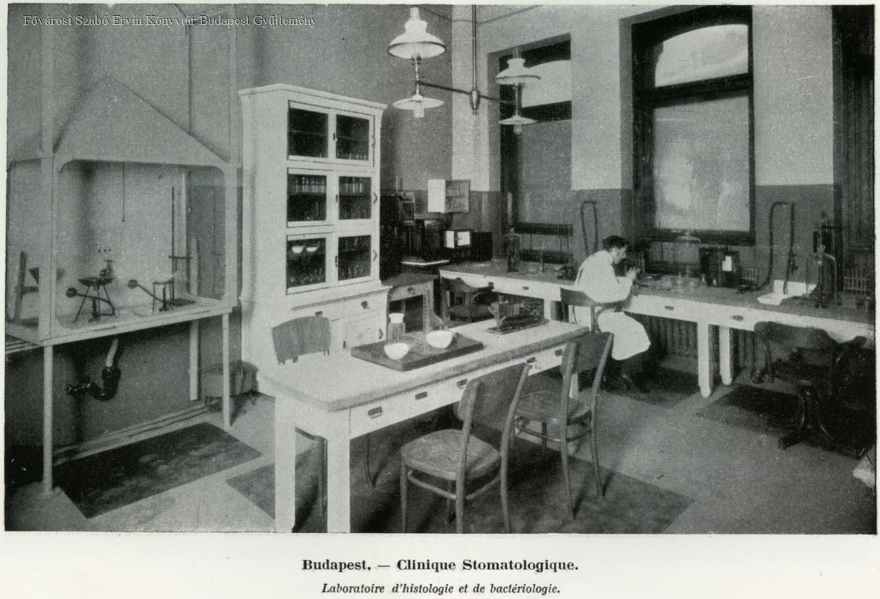Budapest, Clinique Stomatologique Façade, laboratoire de stomatologique, laboratoire d'histologie de bactérologie, salle de traitement, salle d'application, dispensaire, chambre de malades, salle de cours