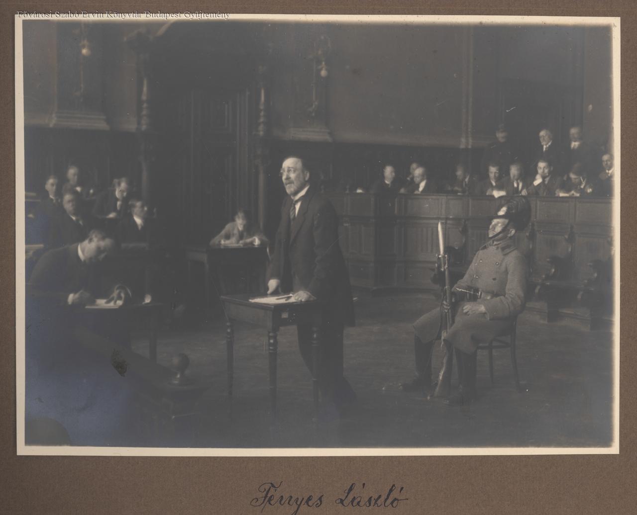 jelenetkép, újságíró, vádlott, csendőrség, politikai per, bírósági tárgyalás
