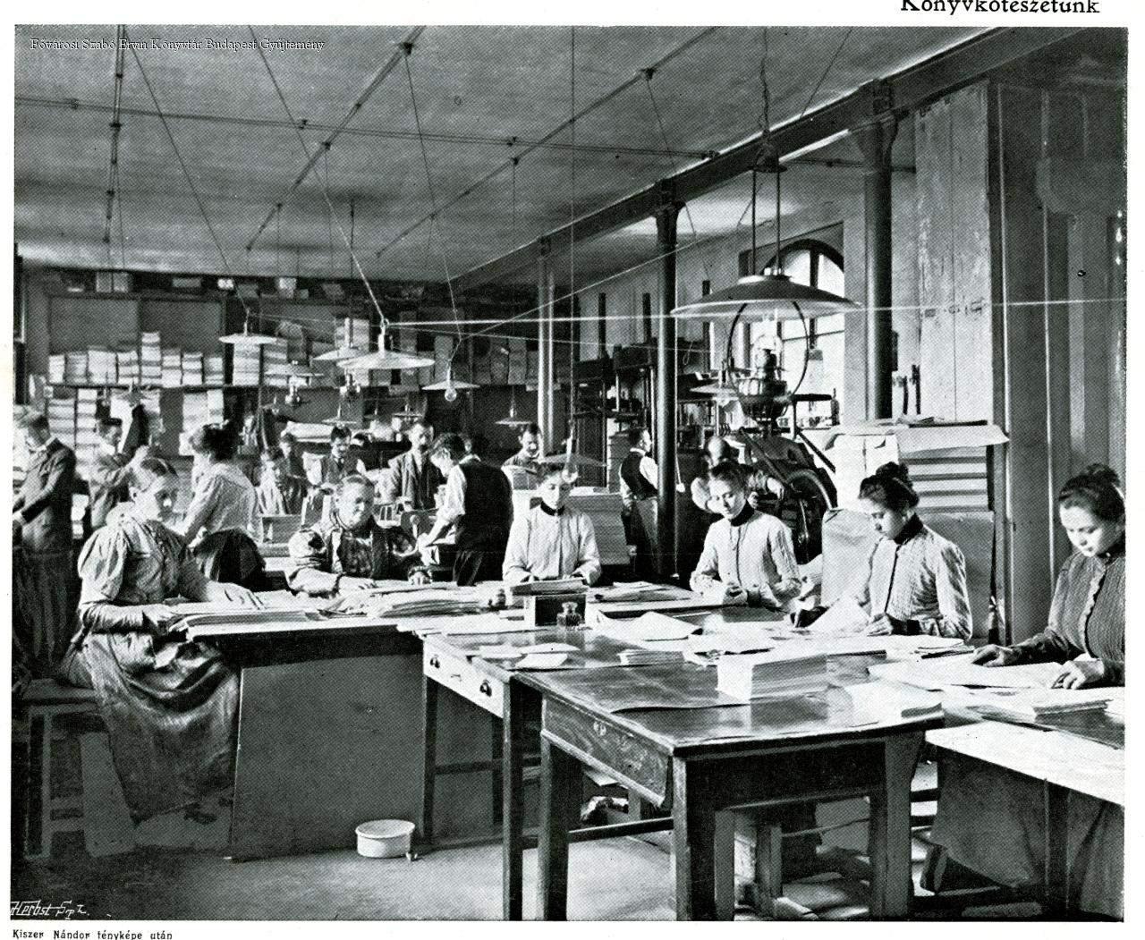 nyomdaipar, könyvkötészet, munkavégzés, női munka, belső felvétel, 1902