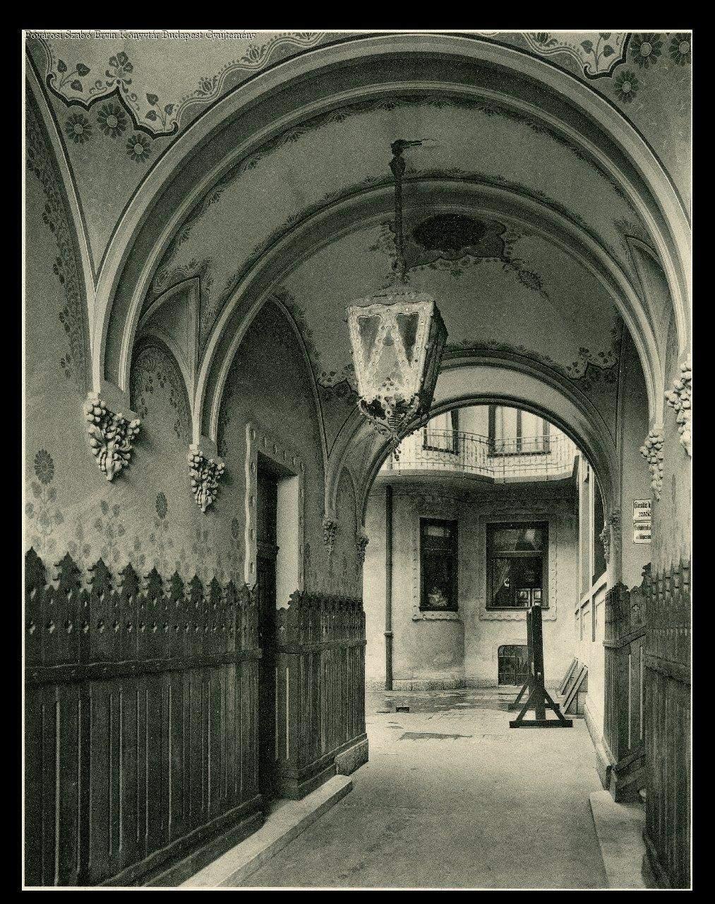 bérház, lakóépület, kapualj, szecesszió, épületdísz, udvar, porolófa, lámpa, épületkép, külső felvétel, 1900-as évek