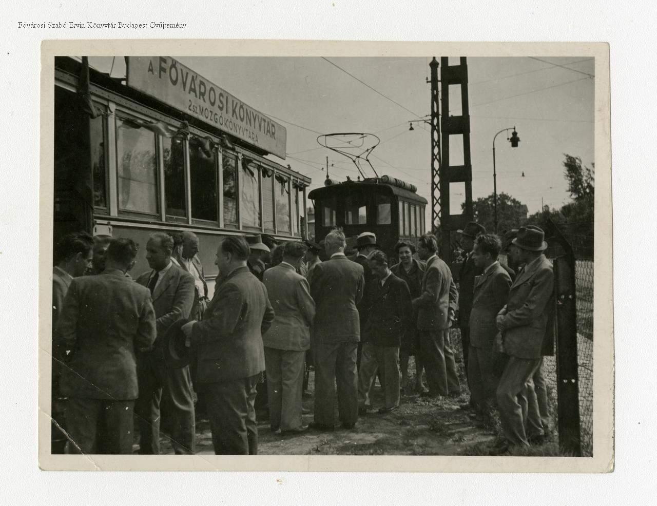 könyvtár, közkönyvtár, fiókkönyvtár, mozgókönyvtár, közúti villamos, átadás, jelenetkép, 1945
