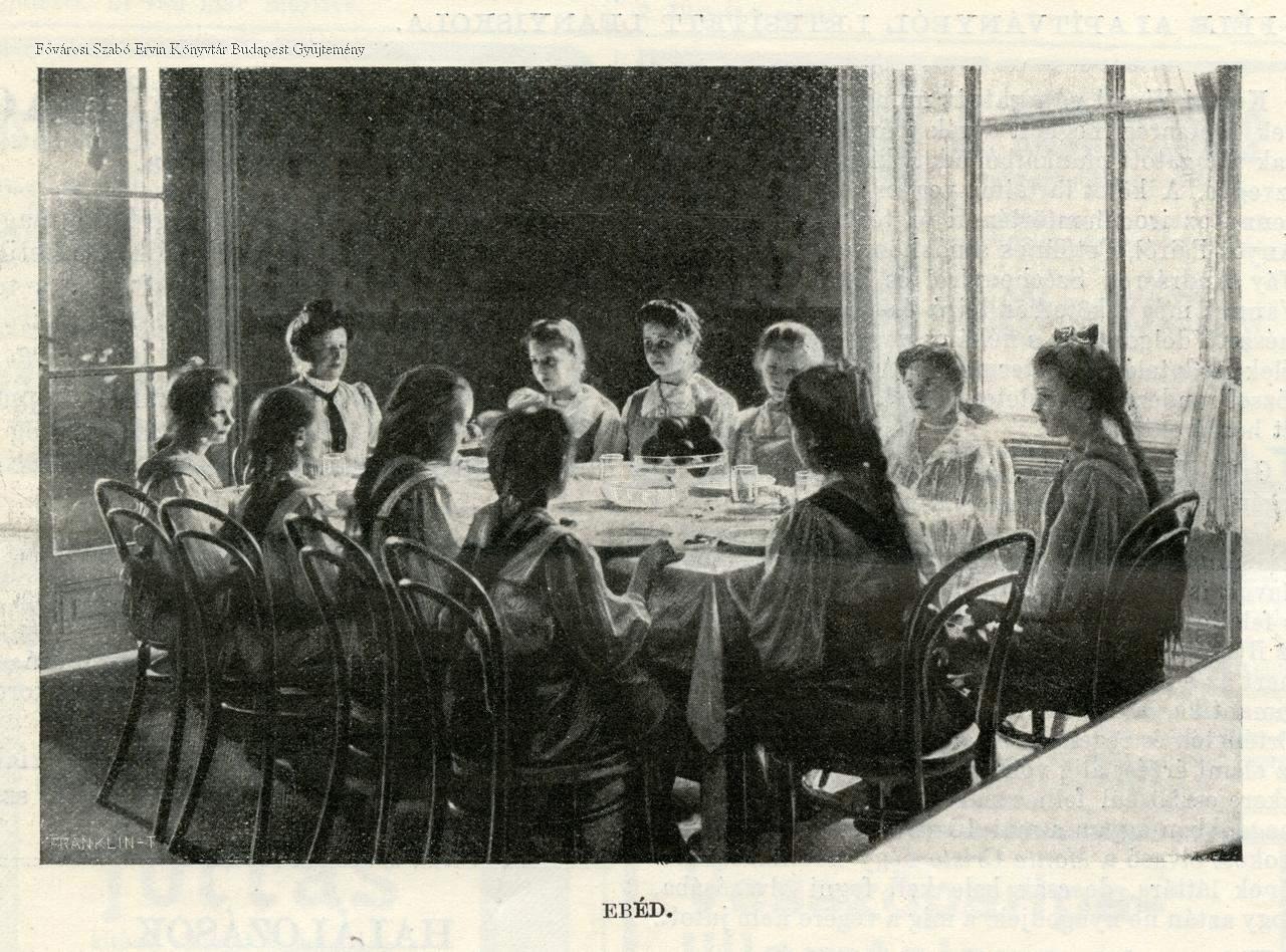 középfokú oktatás, nevelőintézet, református, magániskola, alapítványi iskola, étkező, társalgó, hálószoba, lány, belső felvétel, 1908