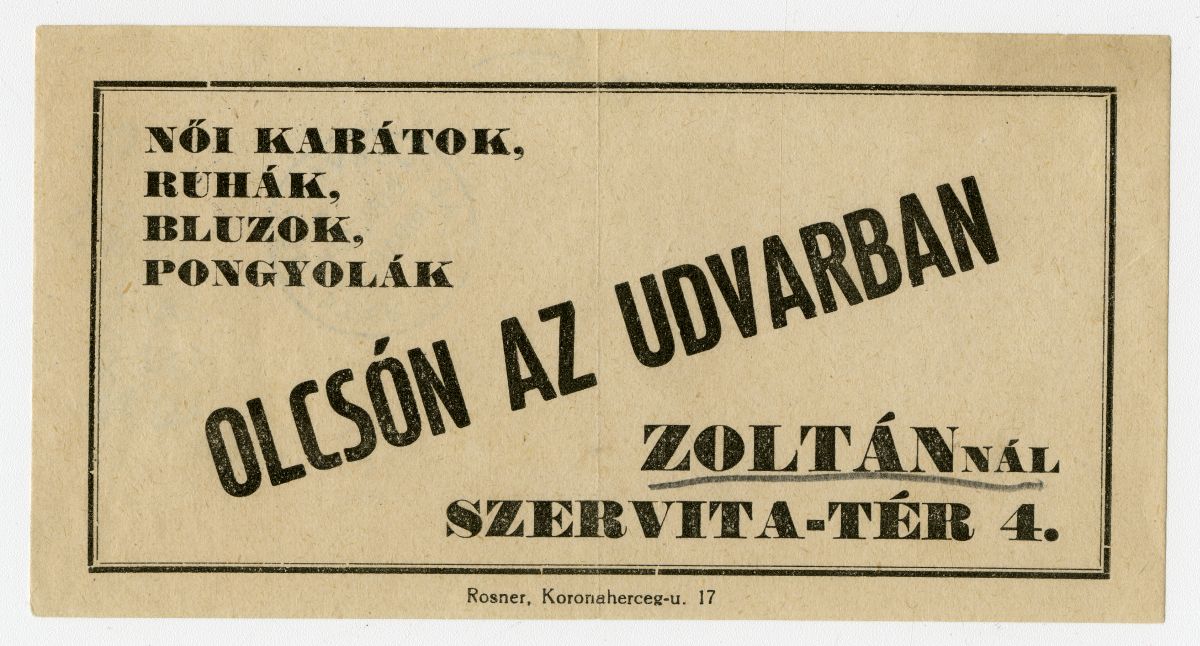 nő, felsőruházat, alsóruházat, női ruha, reklámnyomtatvány, kisnyomtatvány, aprónyomtatvány, számolócédula