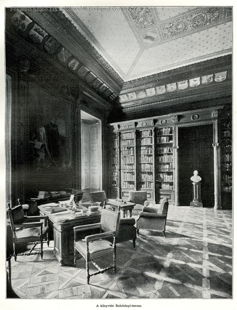 1902, könyvtár, bútorzat, belső felvétel
