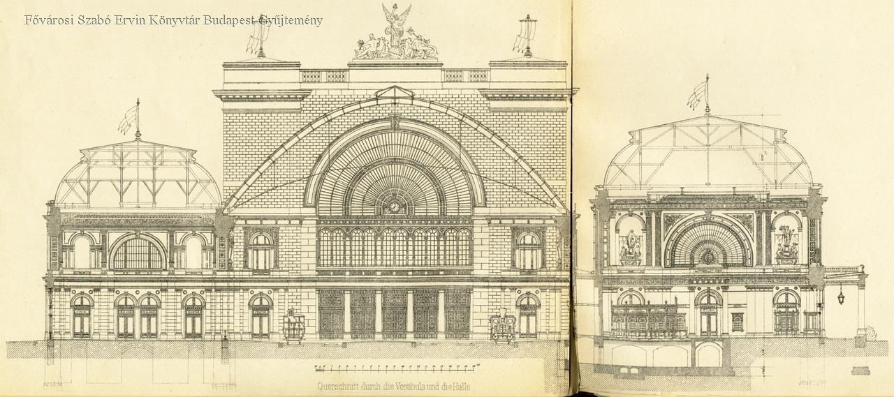Der neue Central-Bahnhof der Königl. Ungar. Staatsbahnen in Budapest, Querschnitt durch die Vestibuls und Halle