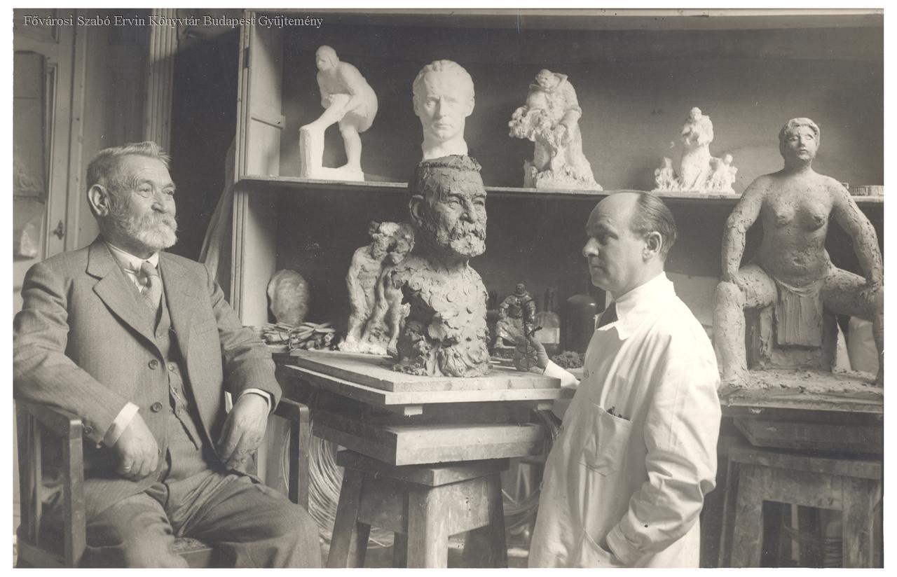 [Hűvös László szobrászművész Gaál Mózest mintázza műtermében]