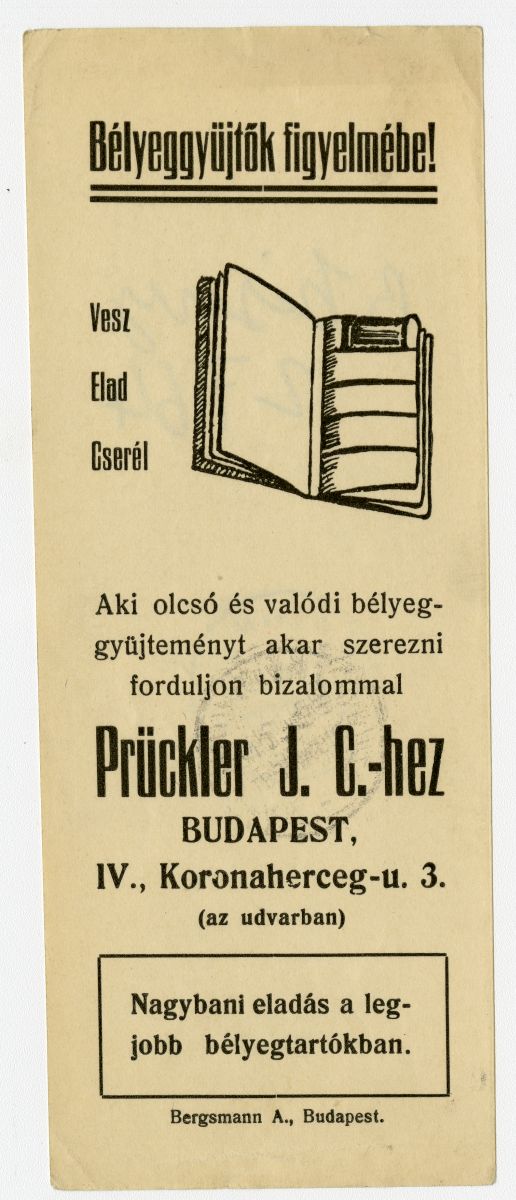 filatélia, gyűjtemény, bélyeg, bélyeggyűjtés, album, üzlet, reklámnyomtatvány, kisnyomtatvány, aprónyomtatvány, számolócédula