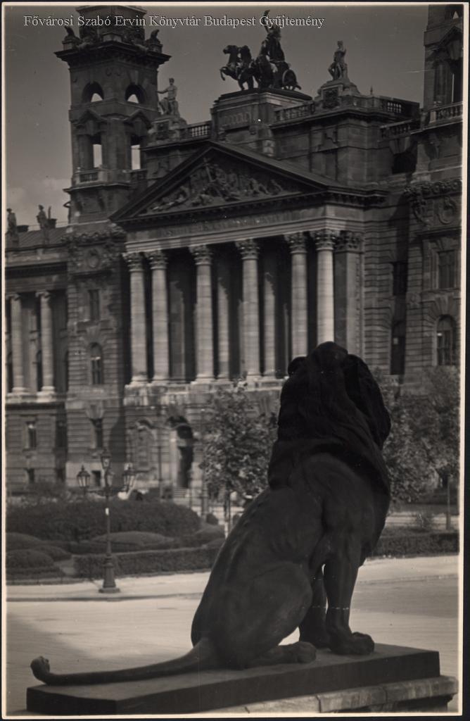 [Igazságügyi Palota, előtérben parlamenti oroszlánszobor]