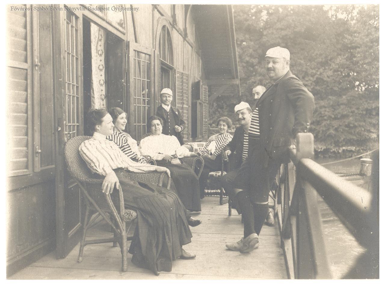 Hölgyek, urak társasága a teraszon