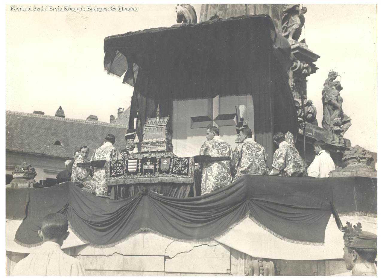 ünnepség, katolikus egyház, körmenet, keresztény ünnep, nemzeti ünnep, augusztus 20., ereklye, egyházi ruházat, egyházi személy, 1920-as évek