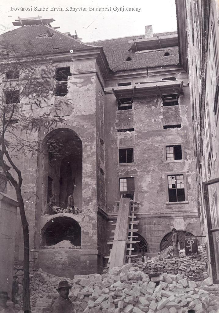udvar, felújítás, épületbontás, épületkép, külső felvétel, 1900 körül