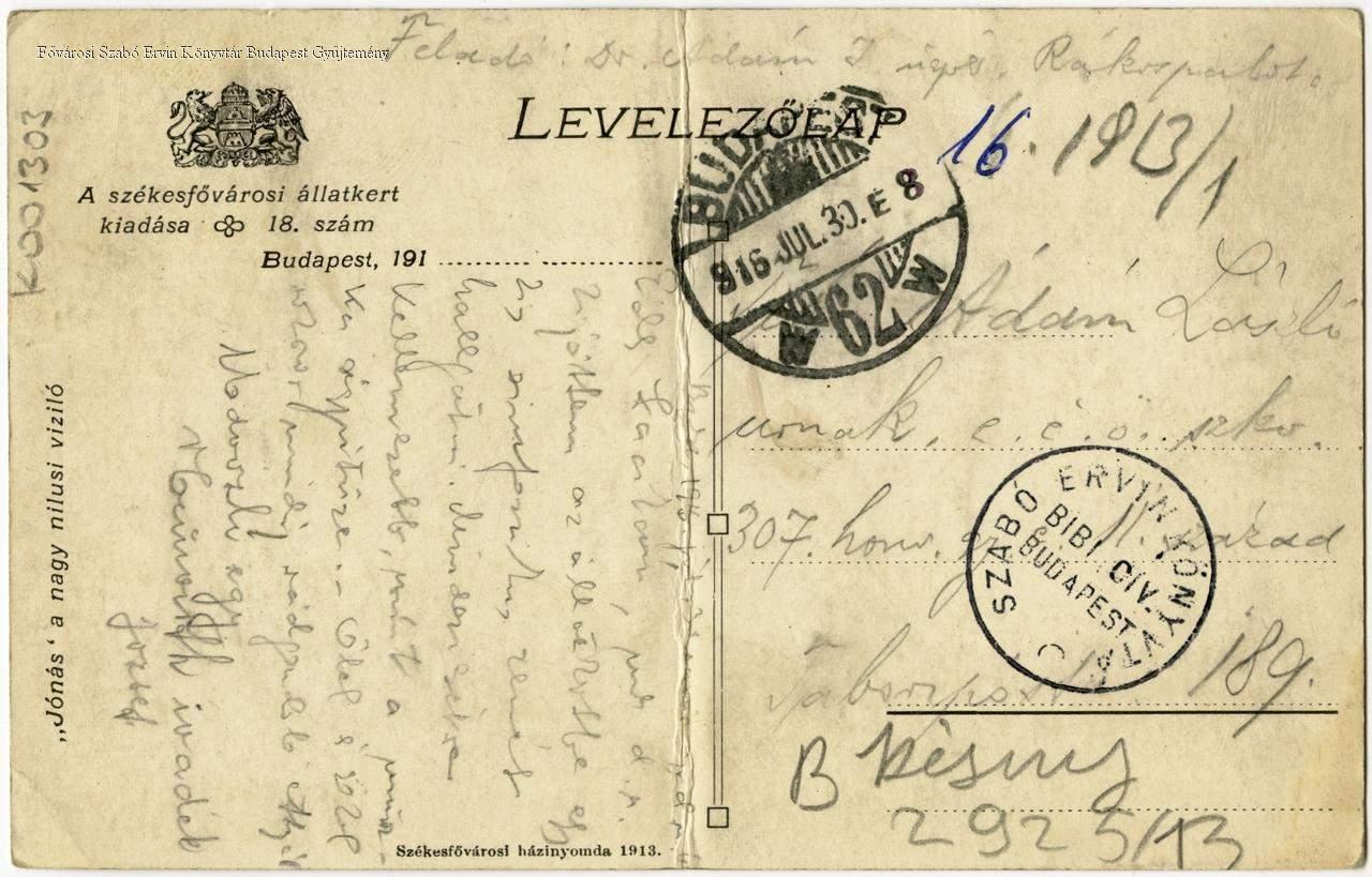 állatkert, víziló, nézők, állatgondozó, képes levelezőlap, 1913