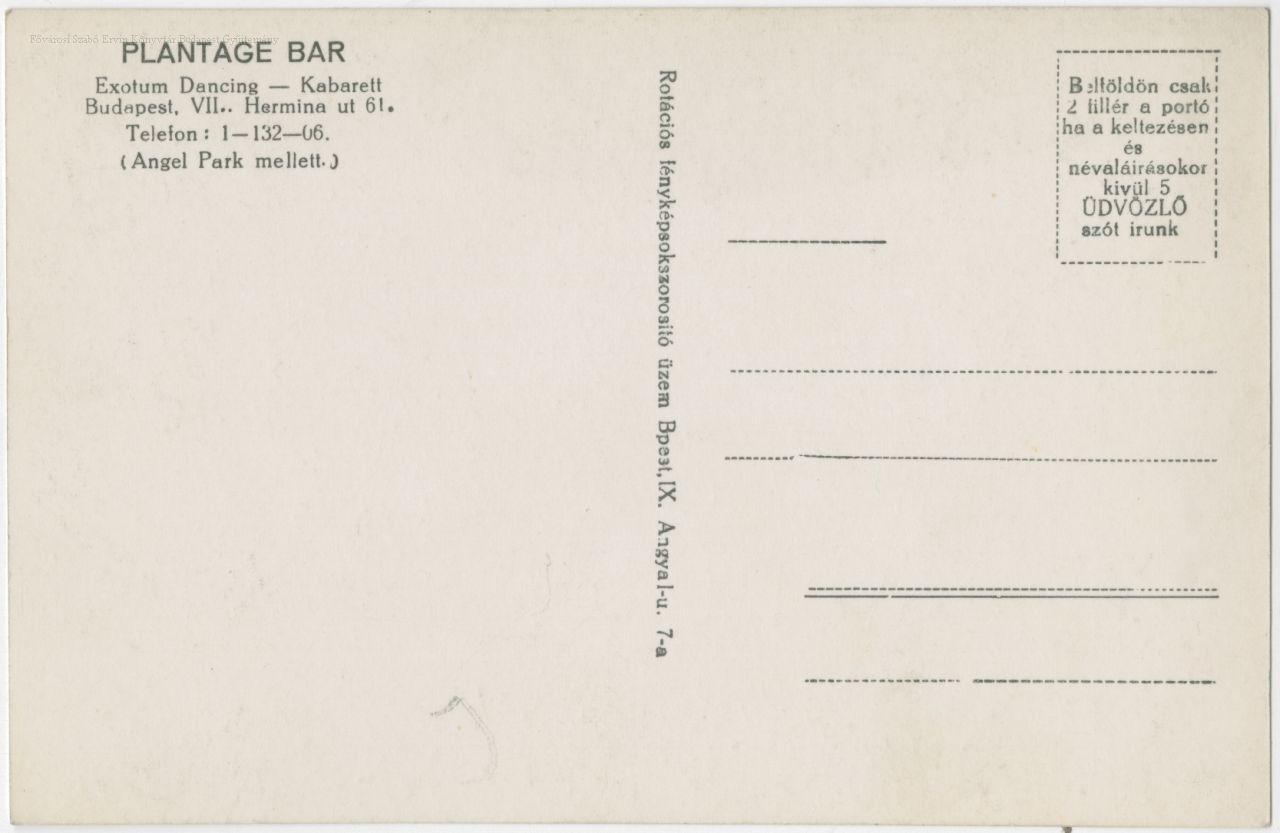 Plantage Bar Exotum Dancing - Kabarett : Budapest, VII., Hermina ut 61.