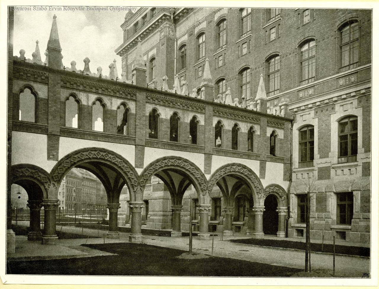Könyvtár, könyvraktári homlokzat és az ahhoz vezető átjáró Bibliothek, Façade des Büchermagazins = Bibliothéque Façade du repositoire des livres