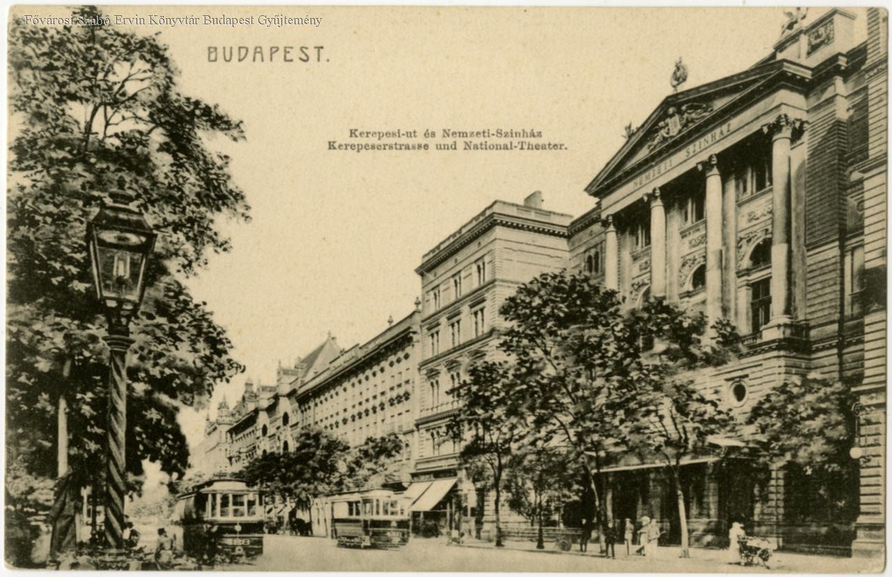 Budapest Kerepesi-ut és Nemzeti-Színház = Kerepeserstrasse und National-Theater
