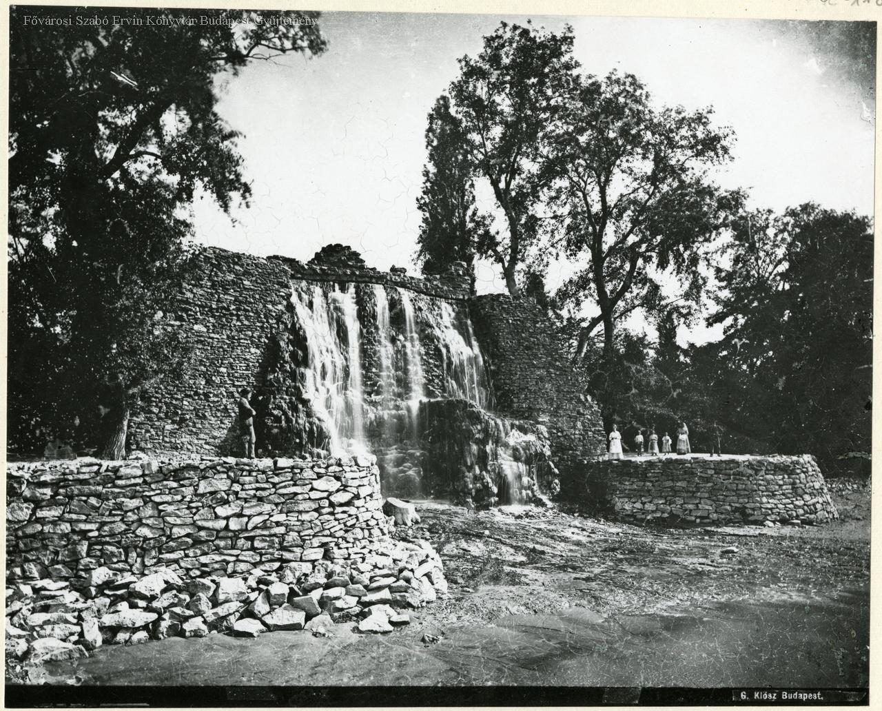 park, forrásvíz, vízesés, flóra, ember, tájkép, 1879 körül