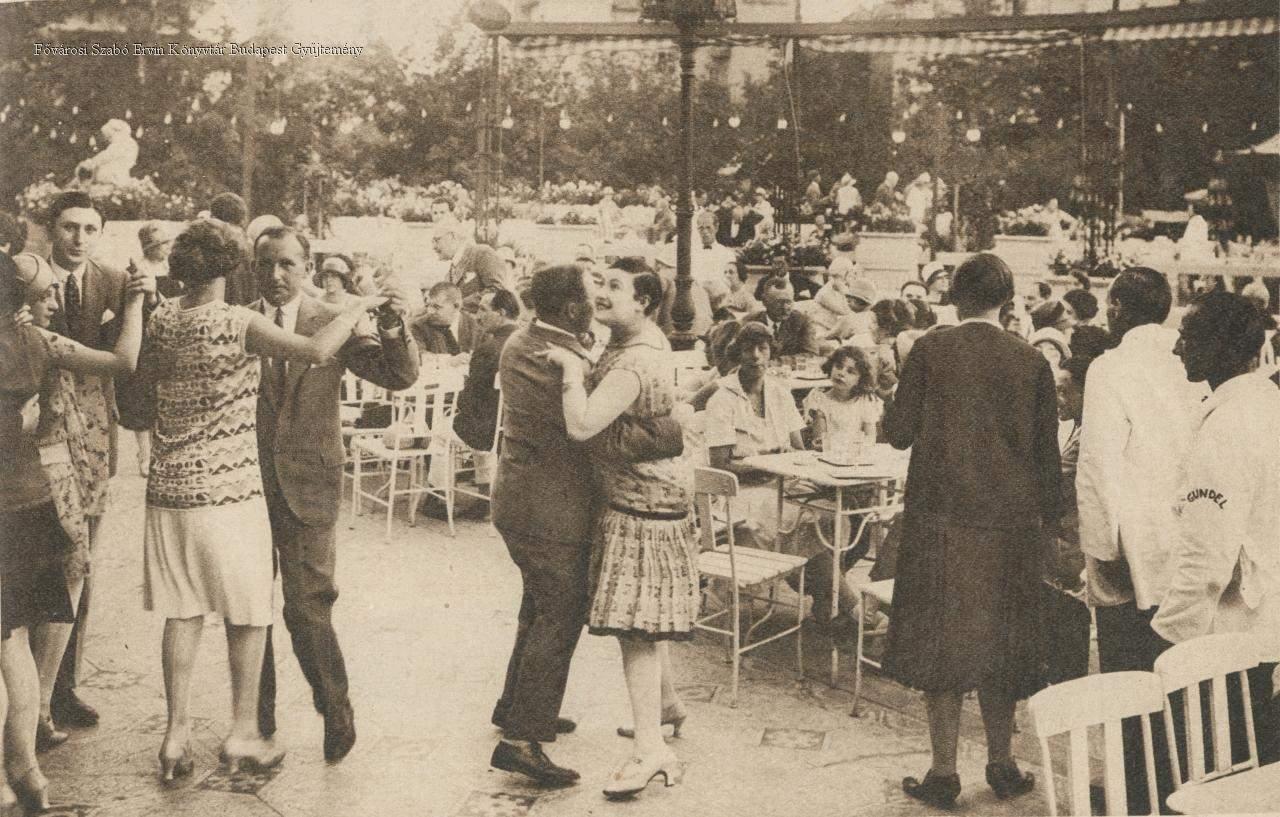 szálloda, étterem, terasz, fürdő, szórakozás, páros tánc, társastánc, sajtófotó, jelenetkép, 1928