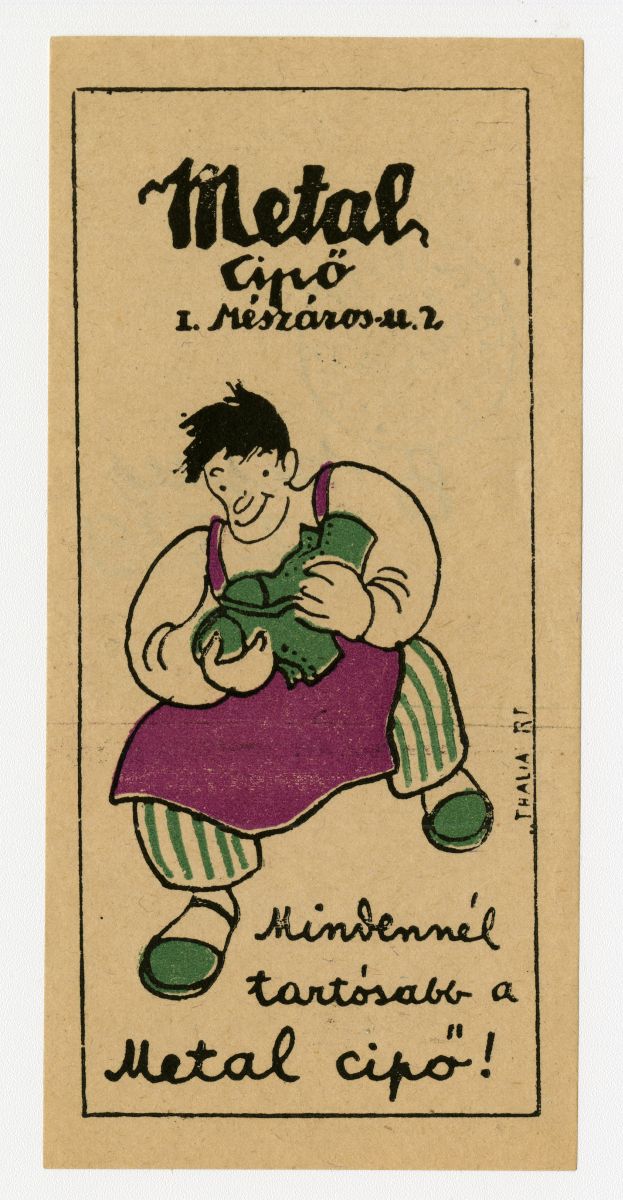 cipő, cipész, férfi, üzlet, inas, suszter, reklámnyomtatvány, kisnyomtatvány, aprónyomtatvány, számolócédula