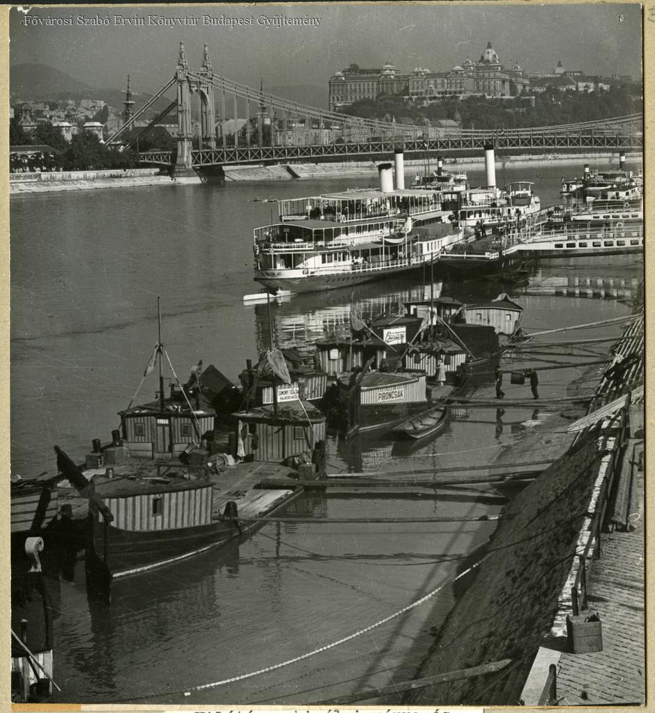 [Pesti Duna-part az Erzsébet hídtól délre, halászhajók]