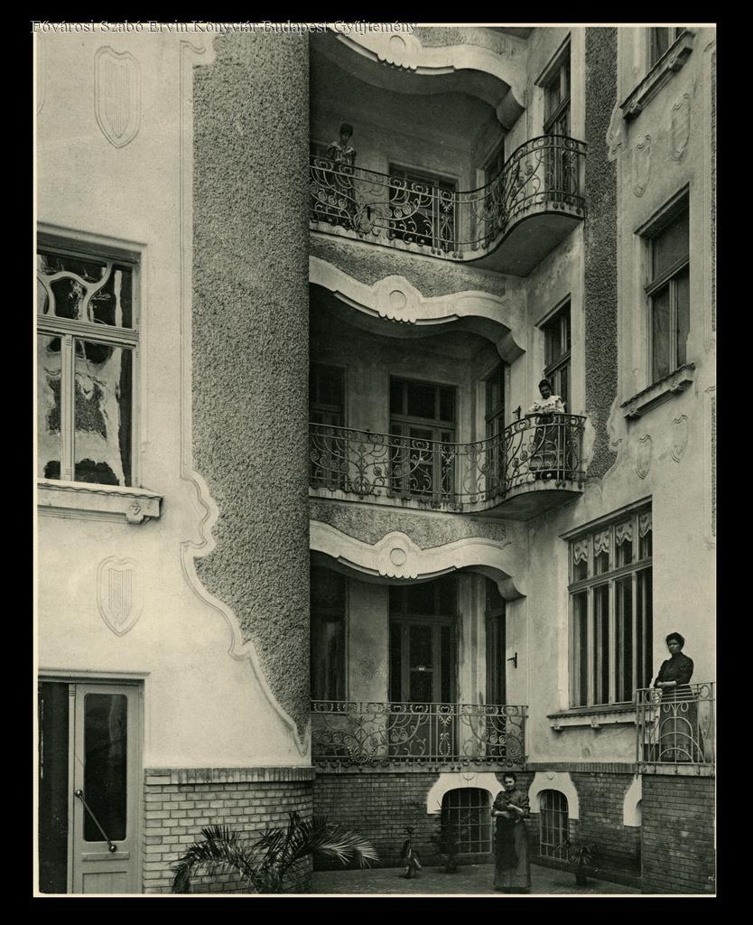 lakóépület, bérház, szecesszió, udvar, vasművesség, , háztartási alkalmazott, épületkép, külső felvétel, 1907-1910 között