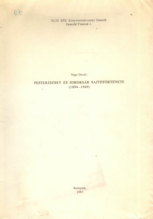 Pesterzsébet és Soroksár sajtótörténete : 1894-1949