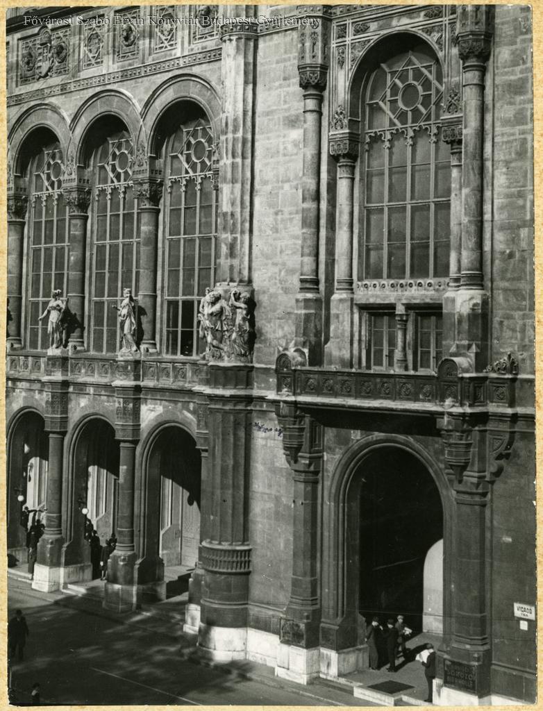 épületfotó, homlokzat, tartóoszlop, épületdíszítés, üvegablak, 1930-as évek