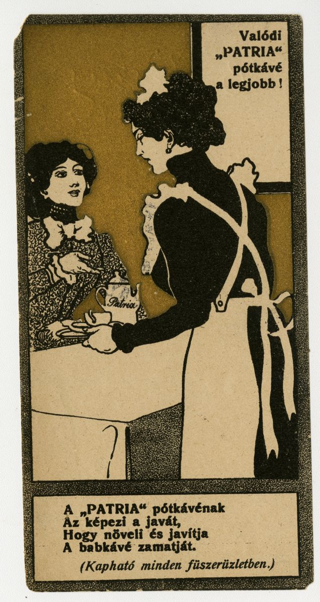 kávé, pótkávé, nő, cseléd, háztartási alkalmazott, reklámnyomtatvány, kisnyomtatvány, aprónyomtatvány, számolócédula