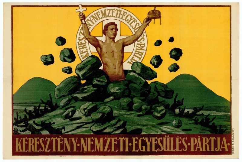 Keresztény Nemzeti Egyesülés Pártja; Friedrich István; Keresztény Nemzeti Párt; Keresztényszociális Gazdasági Párt; Bethlen István; Egységes Párt; grafikus plakát; propagandaplakát