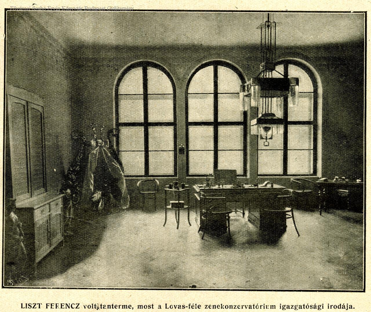 Liszt Ferenc volt tanterme, most a Lovas-féle zenekonzervatórium igazgatósági irodája