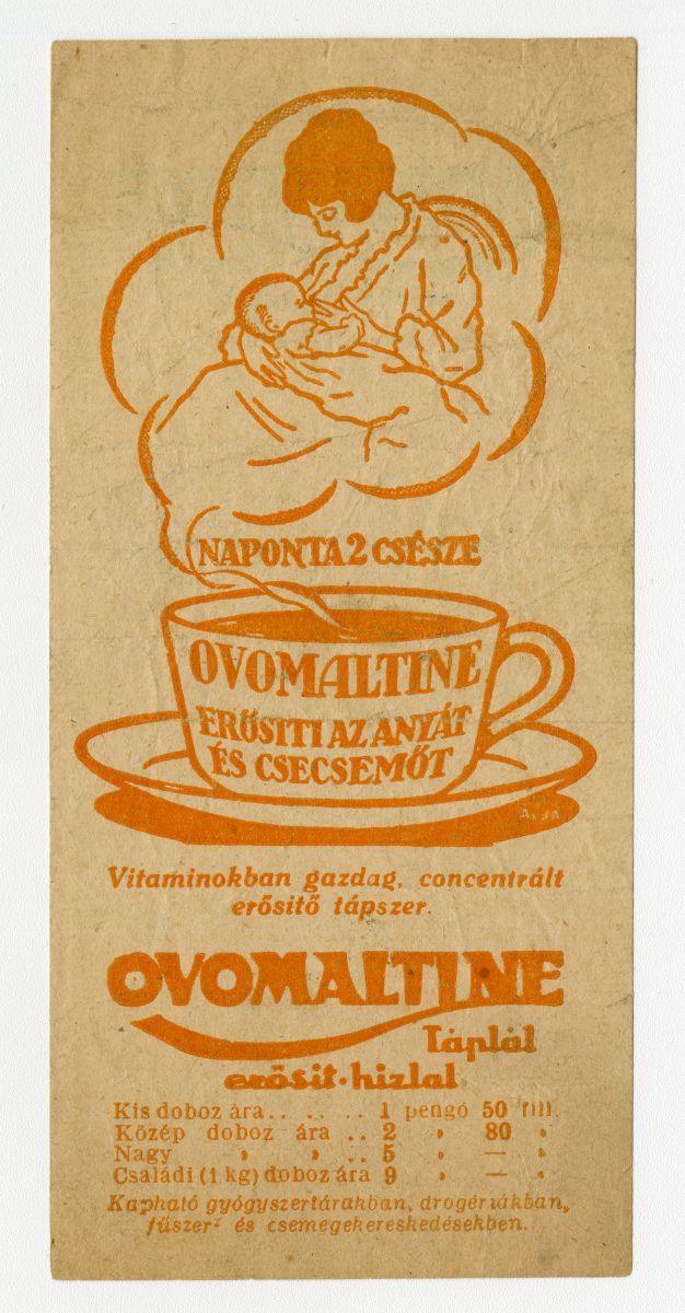 tápszer, csecsemőtápszer, csecsemőgondozás, csecsemőtáplálás, vitamin, táplálékkiegészítő, csésze, anya, gyermek, csecsemő, nő, ár, reklámnyomtatvány, kisnyomtatvány, aprónyomtatvány, számolócédula