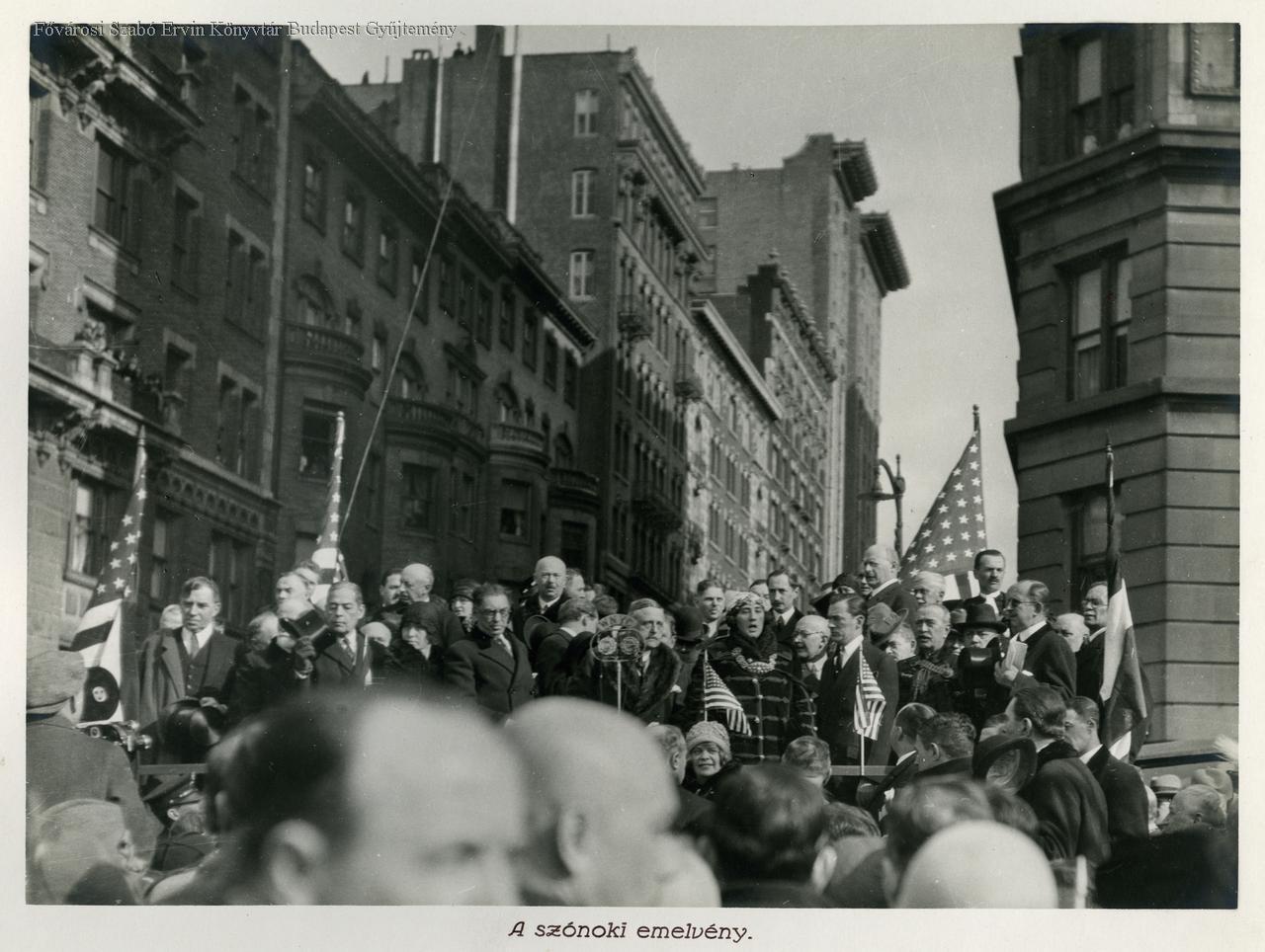 [A new york-i Kossuth-szobor avatására utazó budapesti küldöttség útja] a szónoki emelvény