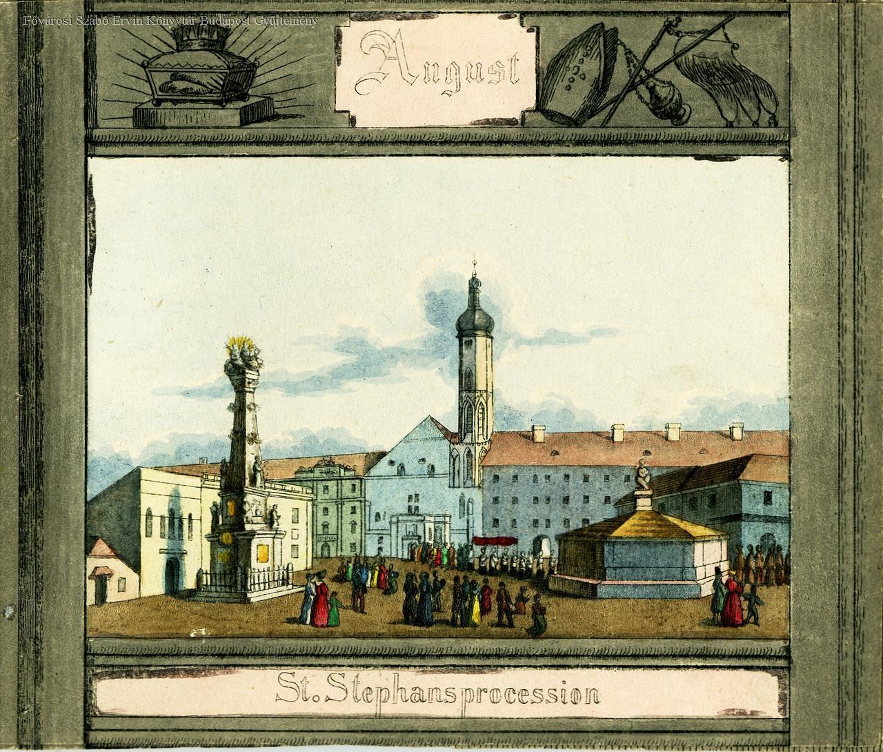 szobor, díszkút, utcakép, körmenet, 1837-1848