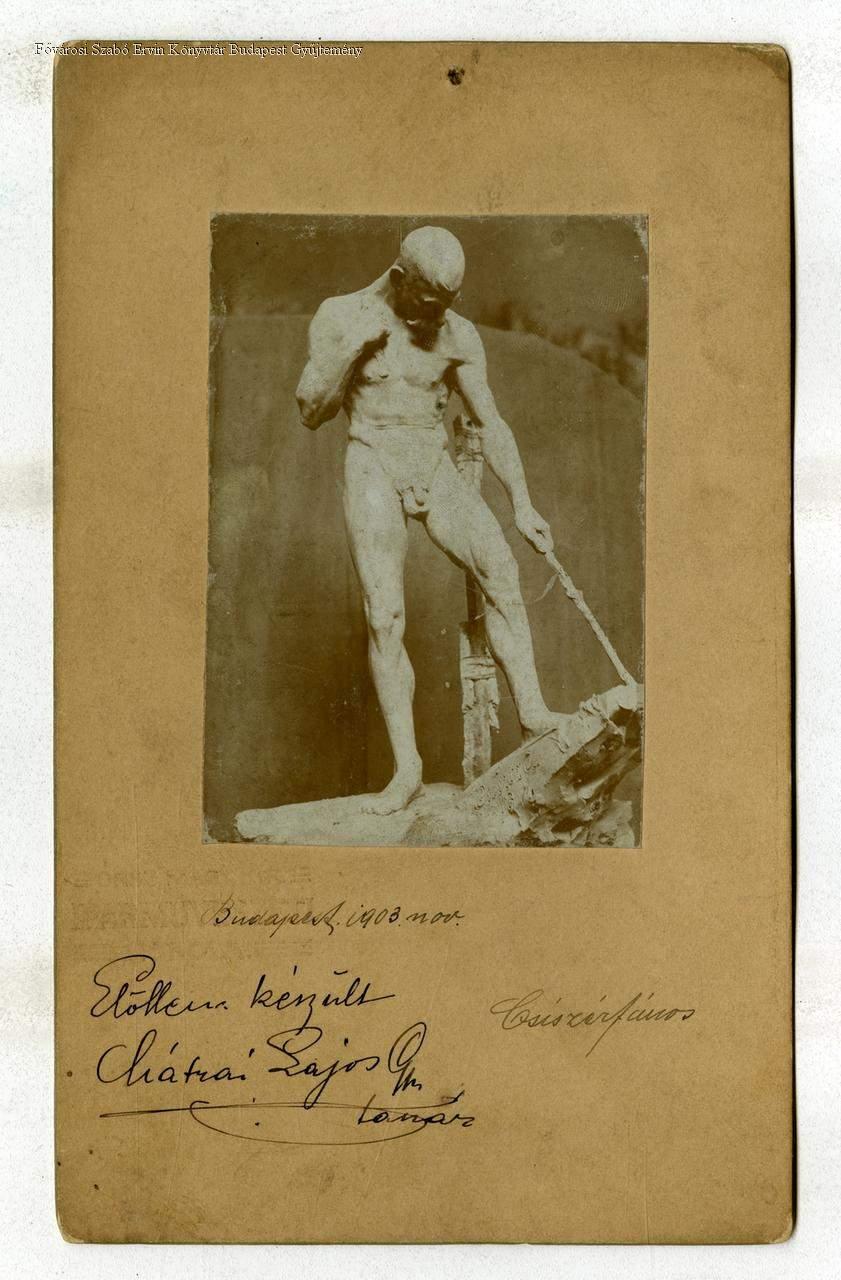 [Zsákodi Csiszér János férfiakt szobra az Országos Magyar Királyi Iparművészeti Iskolában, az iskola pecsétjével és tanári igazolással, 1903. nov.]