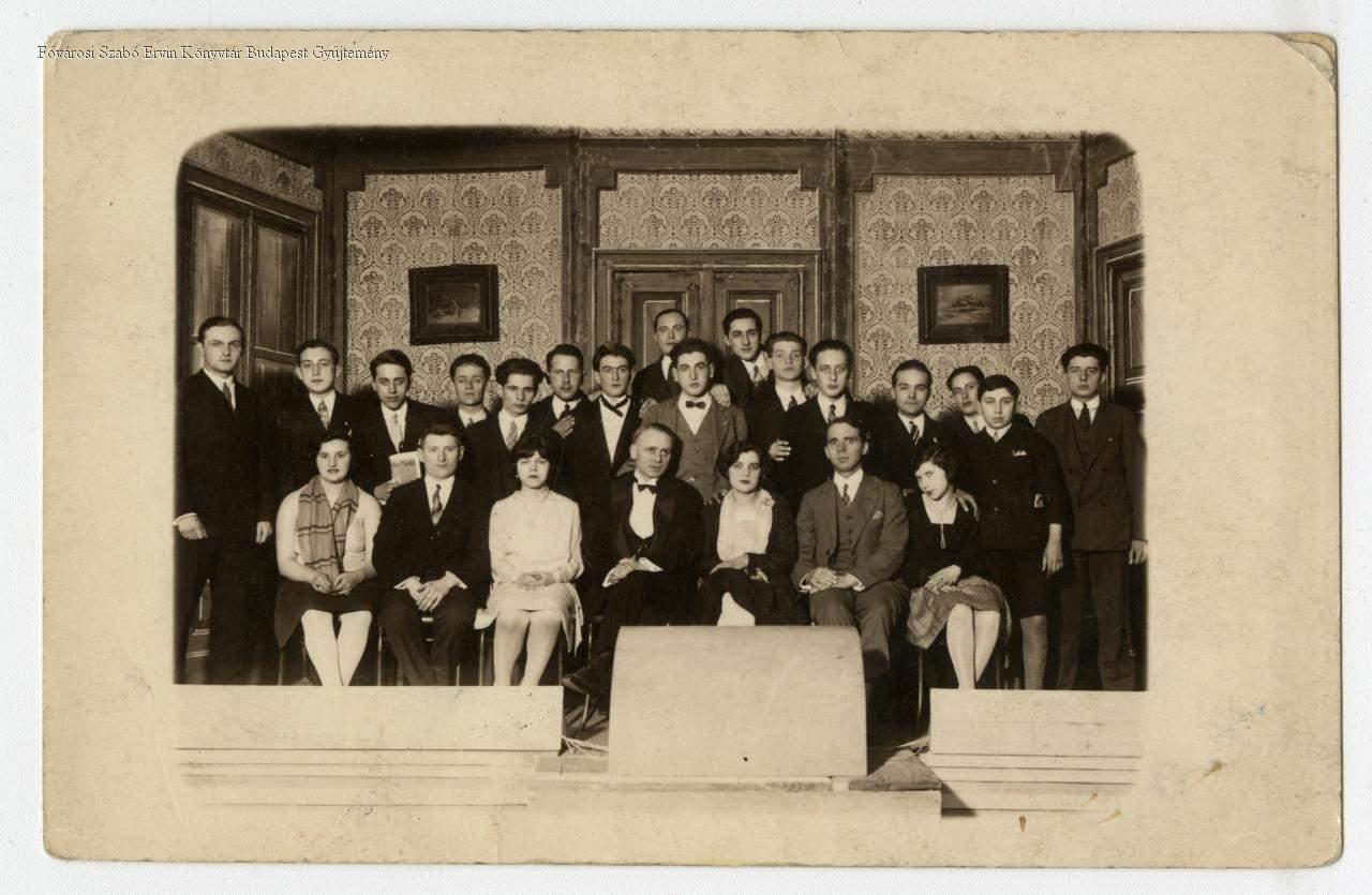 színész, , férfi, színtársulat, amatőr színjátszás, képes levelezőlap, belső felvétel, csoportkép, 1910-es évek