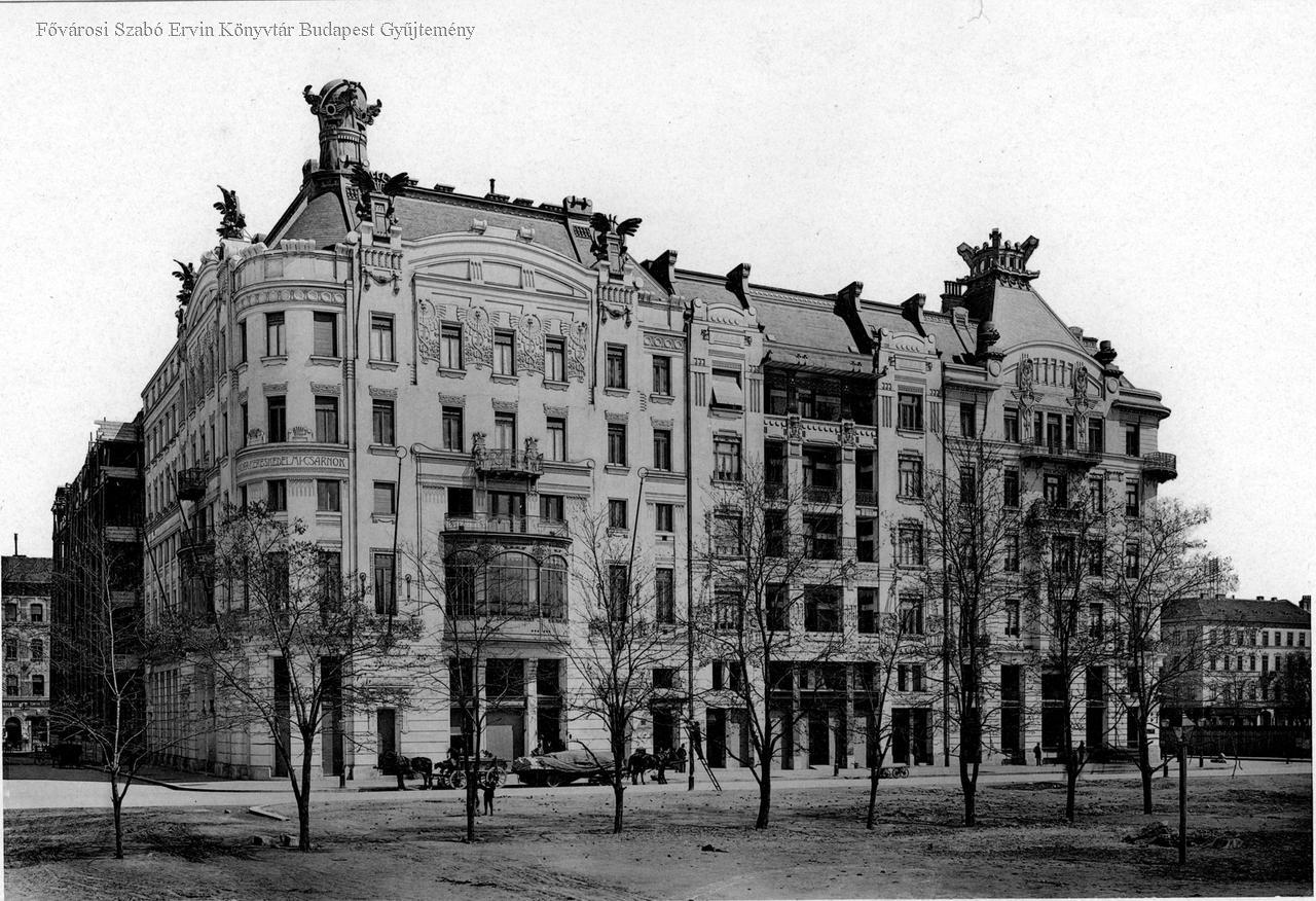 bérház, lakóépület, szecesszió, kereskedelmi létesítmény, lovas kocsi, áruház, épületkép, külső felvétel, 1902