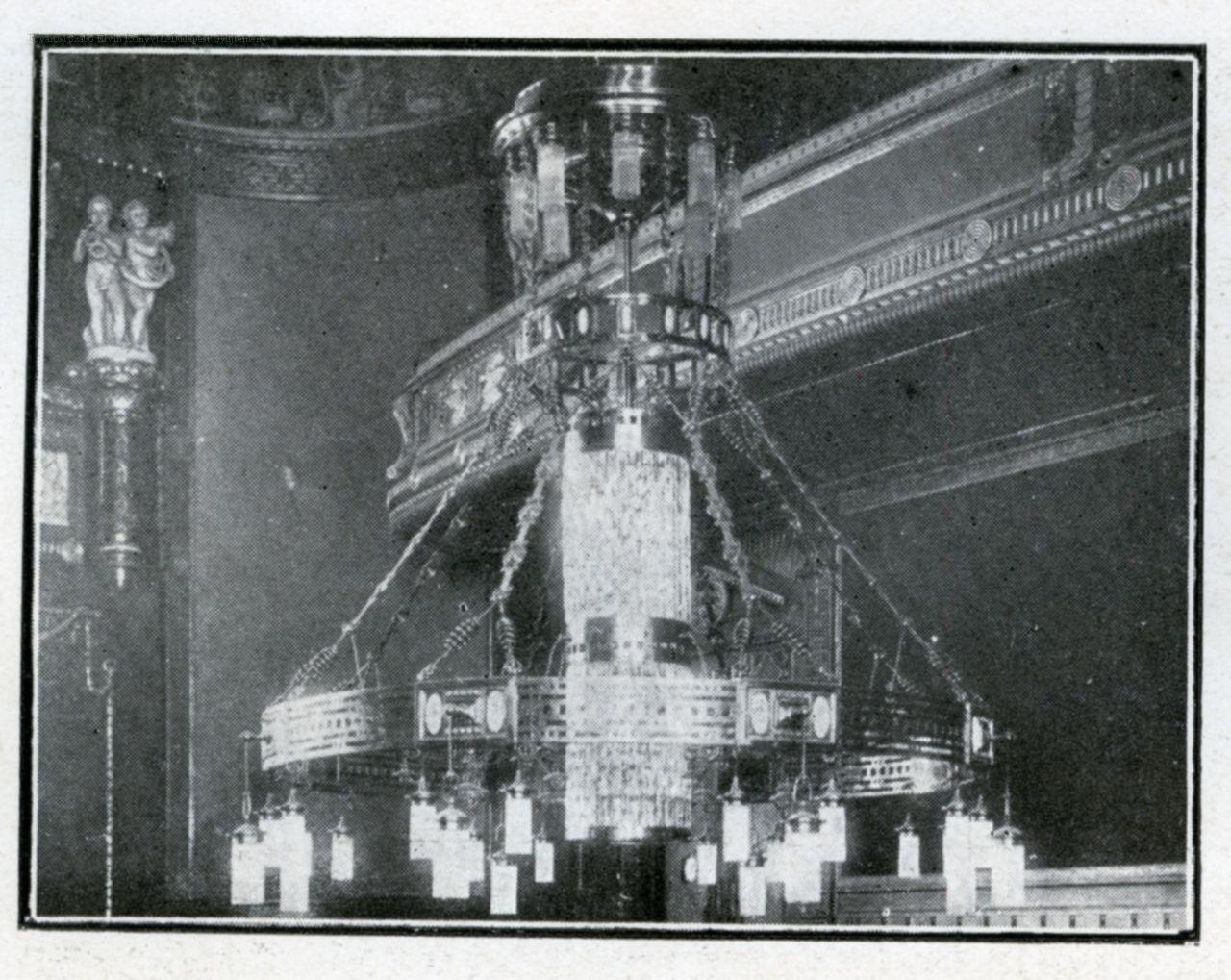 Csillár a nagyteremben. Készítette a Magyar Fém- és Lámpaárugyár