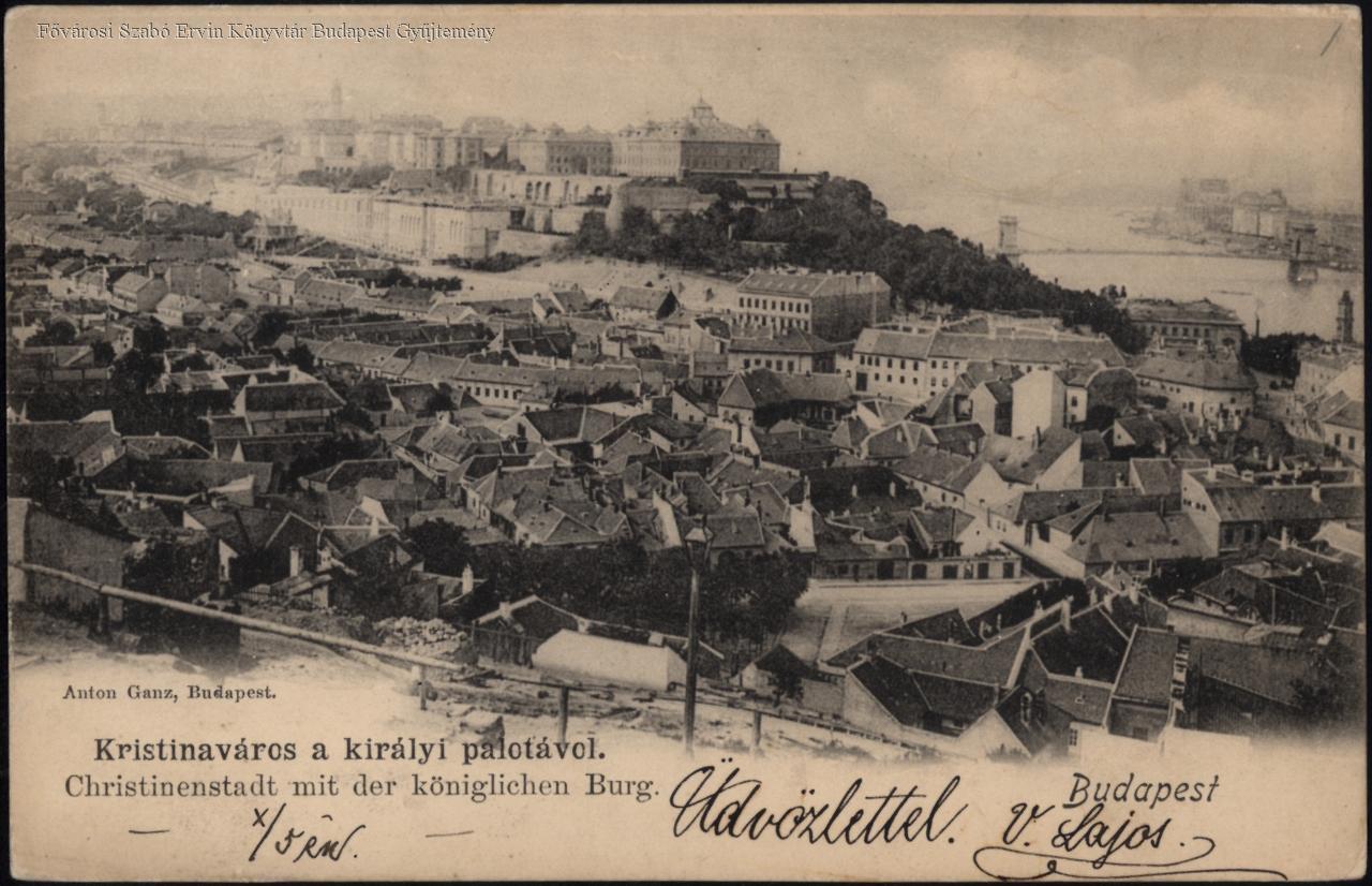 A Krisztinaváros és a Tabán látképe a Királyi Palotával. Háttérben az épülő Országház körvonalai