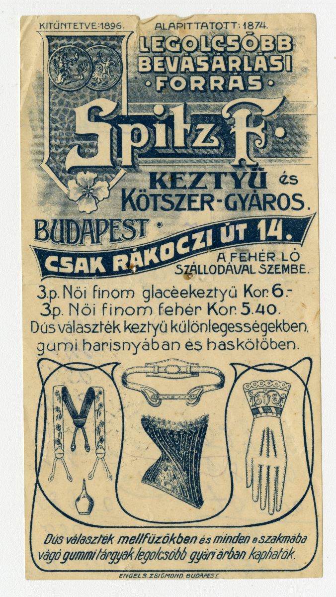 kesztyű, kötszer, harisnya, fűző, fehérnemű, alsóruházat, nadrágtartó, reklámnyomtatvány, kisnyomtatvány, aprónyomtatvány, számolócédula