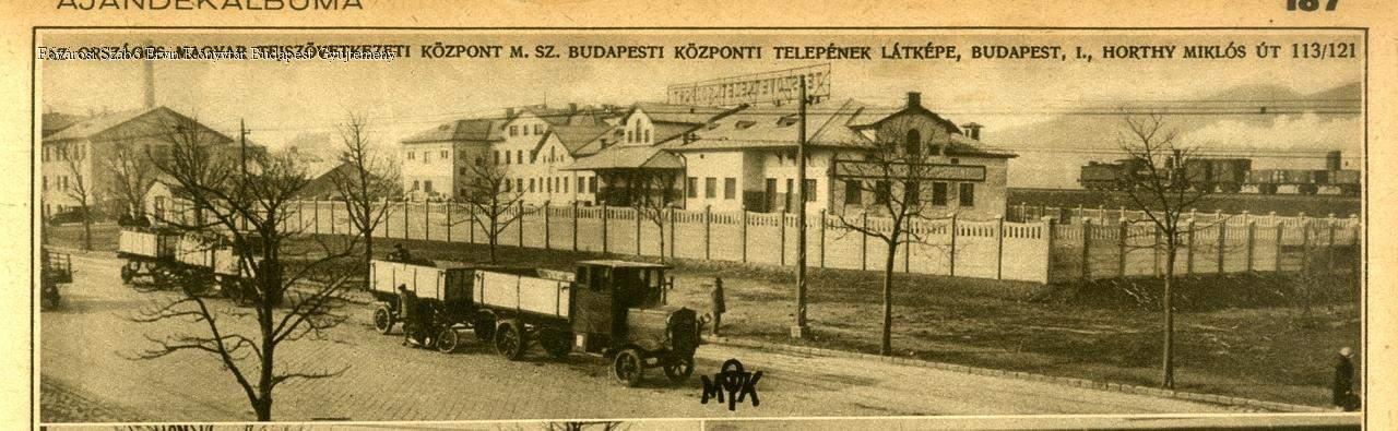 tejipar, ipari épület, kerítés, tehergépkocsi, vasúti kocsi, épületkép, 1930