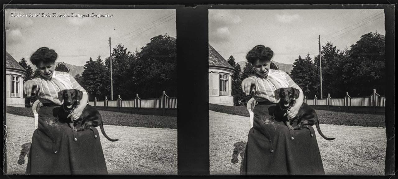 [Nő kutyával, kertben] [Woman with dog, in a garden]