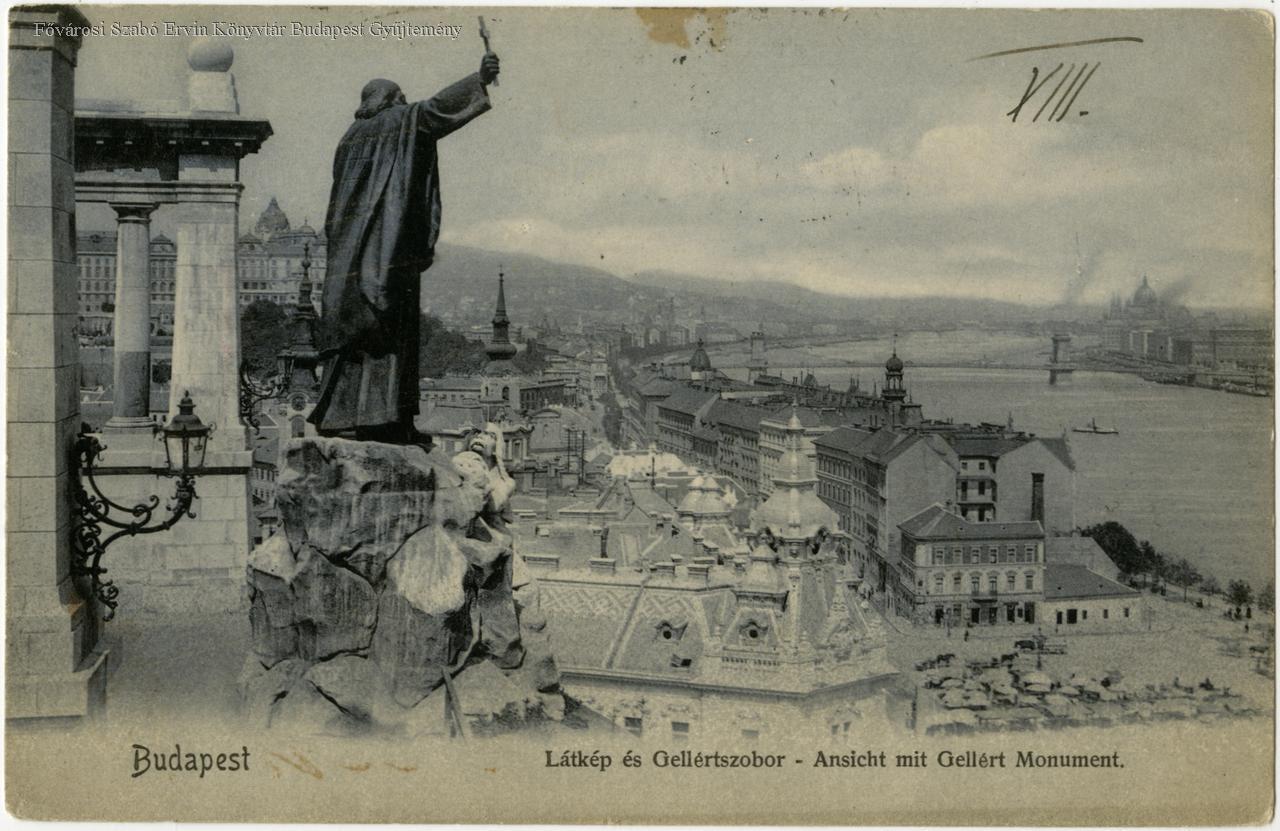 Budapest Látkép és Gellértszobor = Ansicht mit Gellért Monument