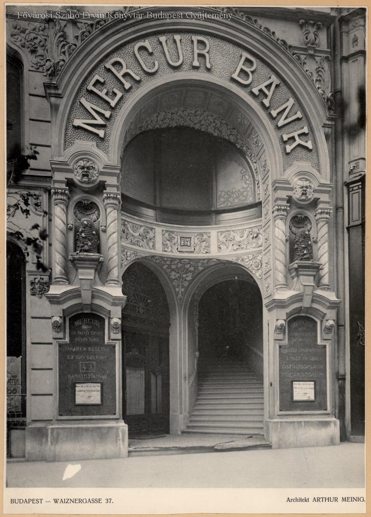 bank, bejárat, kapu, lépcső, felirat, cégtábla, jelkép, megtakarítás, díszítés, kirakat, házszámtábla, épületkép, külső felvétel, 1900-as évek